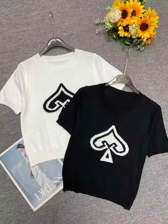 夏季新款圆领桃心提花针织短袖T恤,独立包装,均码面...