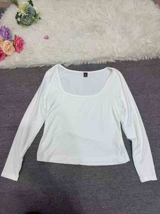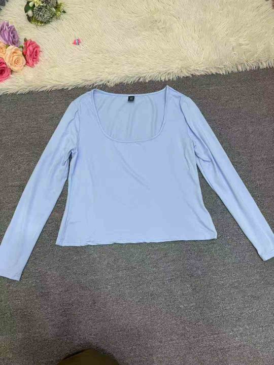 5851件,女早秋季纯色百搭U领长袖T恤上衣女弹力修身高腰显瘦打底衫,一包3件3个色包装,码数XL-4XL,全清3.8元,分货➕1。 货号:1323