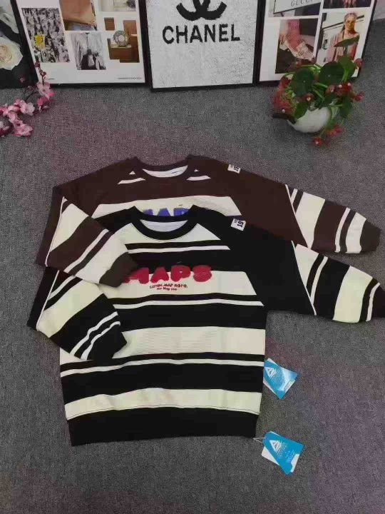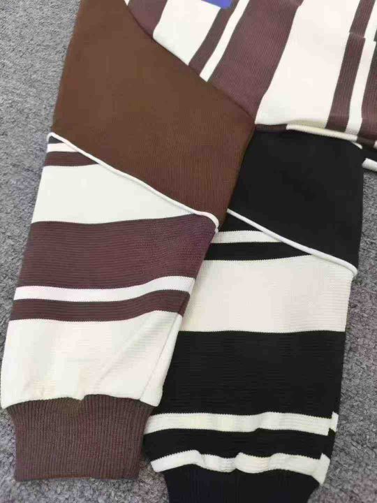 品牌童装2025新款条纹卫衣 数量400件左右 尺码110--160 整款两个色 手袖带点小设计 独立包装带吊牌 货品干净整洁质佳!。 货号:1323