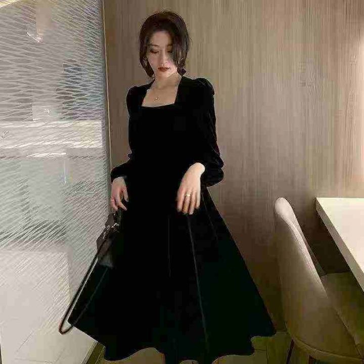 ️226件早秋冬法式小香风小礼服赫本风小黑裙金丝绒秋...