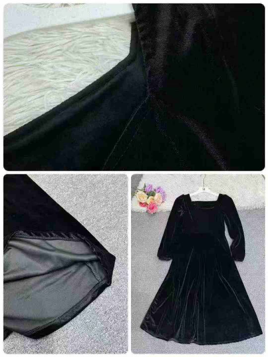 ️226件早秋冬法式小香风小礼服赫本风小黑裙金丝绒秋冬连衣裙,码数M到3XL,版型大,单款黑色,有加绒款,也有不加绒款,独立包装,全清10.8元,分货➕1。 货号:1303