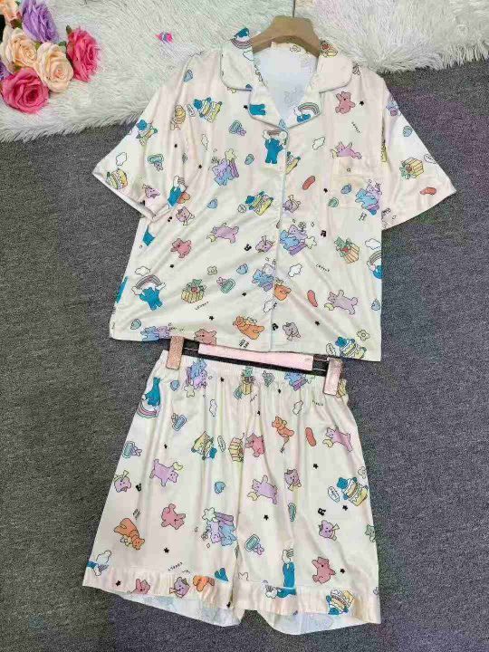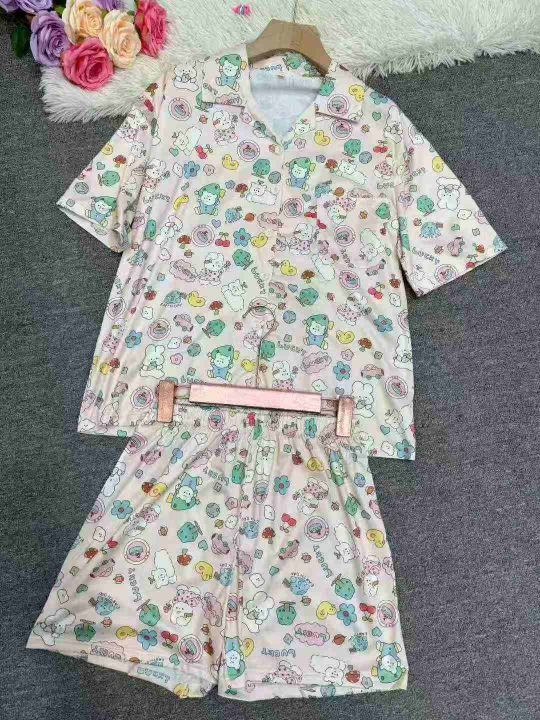 甜美睡衣女士云朵棉短袖短裤套装,2025夏季卡通家居服可外穿,全清10.8元,数量210套,独立包装,码数M L,分货+1元,。 货号:1303