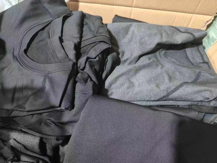4000件左右高弹速干加绒加厚男士户外跑步运动长袖T恤一个款三个色,白色,黑色,灰色,码数S-2XL,纸箱装一半有包装,一半没包装,全清4.9元,分货加一。