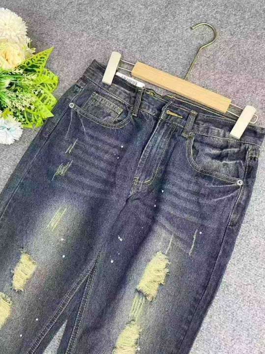 65件设计感潮牌破洞泼墨修身束脚牛仔裤。面料舒适,品质可入实体。28一30码,独立包装,全清12.8