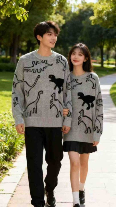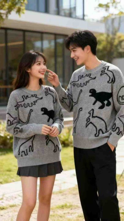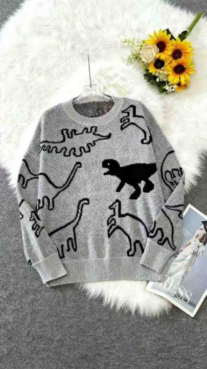男女同款宽松慵懒风卡通提花圆领套头毛衣,独立包装,均码面料软糯舒适,184件,全清6.9元超低价秒杀!