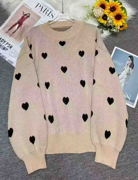 秋冬新款宽松慵懒风爱心大板提花包芯纱套头毛衣,独立...