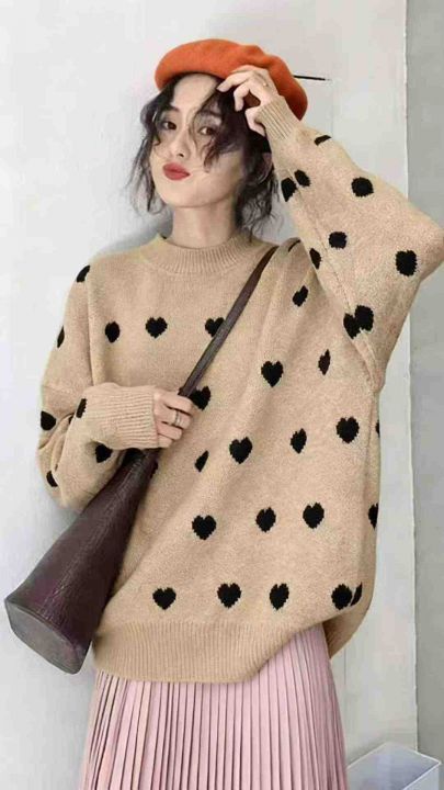 秋冬新款宽松慵懒风爱心大板提花包芯纱套头毛衣,独立...