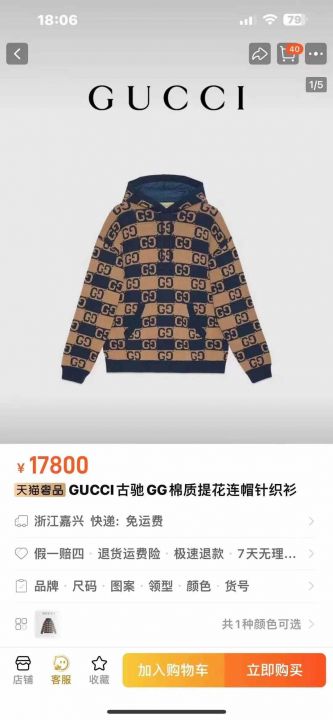好货推荐 经典古驰GG针织连帽提花男女卫衣S~XL码 ...
