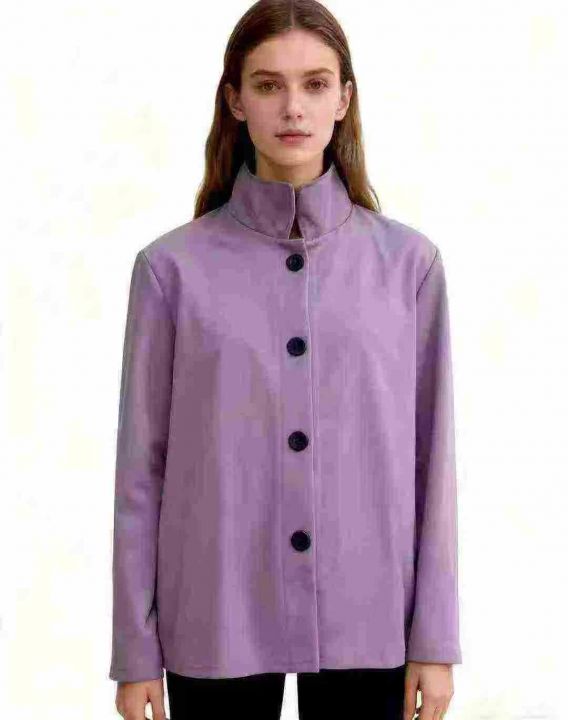 368件,秋冬新款丁香紫夹克外套纯棉休闲长袖立领中性...