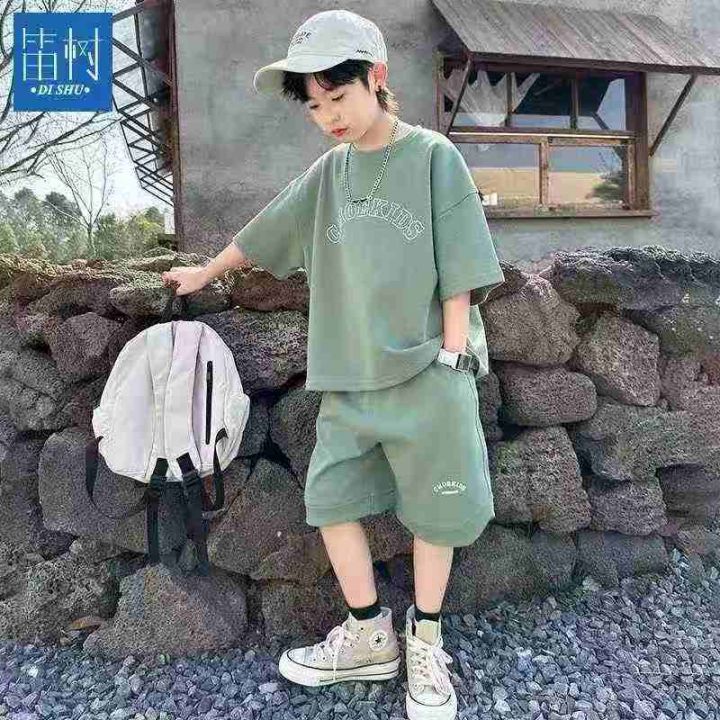 男童夏装套装2025新款夏季中大童短袖男孩洋气儿童夏天薄款帅气潮,数量150套左右,码数120-140,独立包装后领包边,全清8.5元