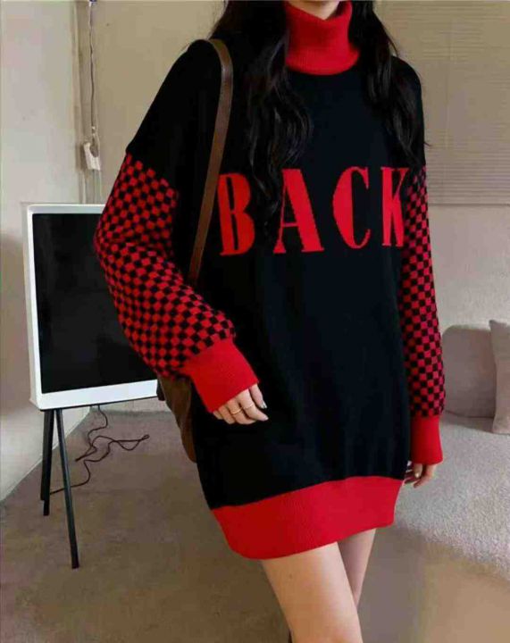 秋冬新款大版宽松慵懒风高领提花加厚款套头毛衣,独立...