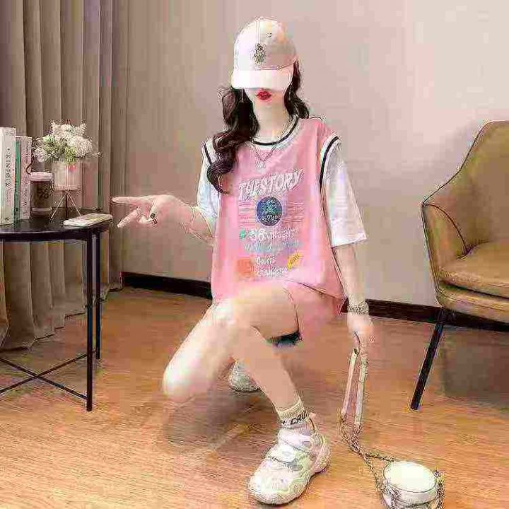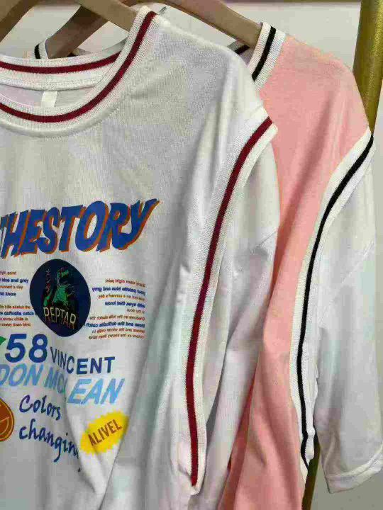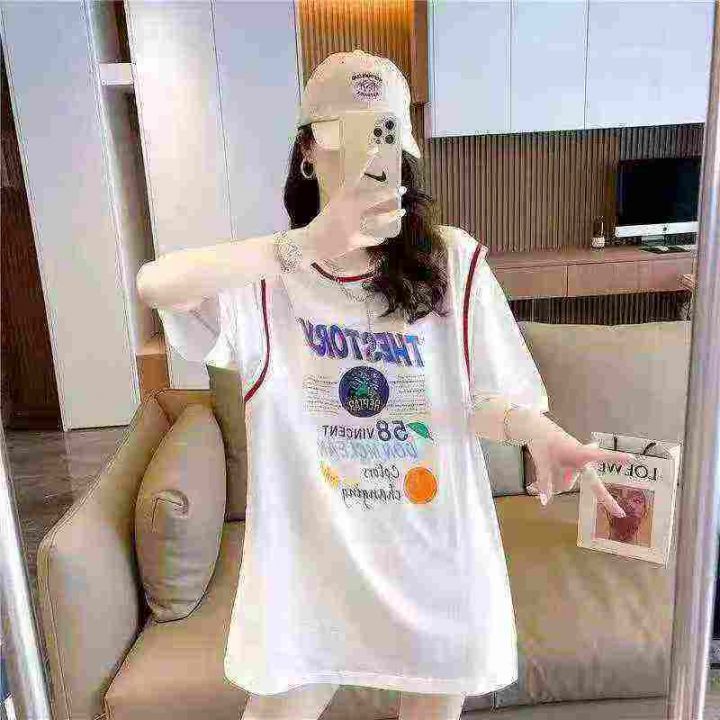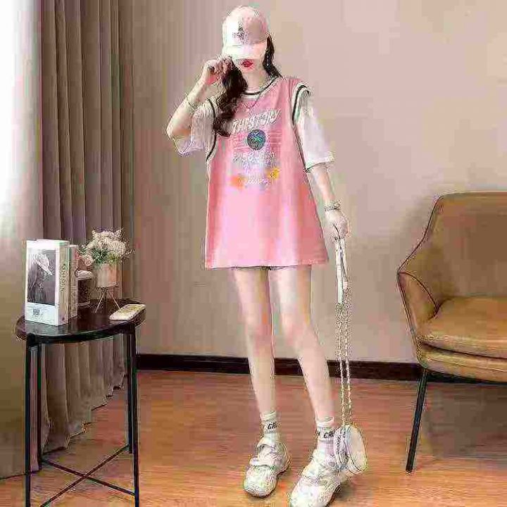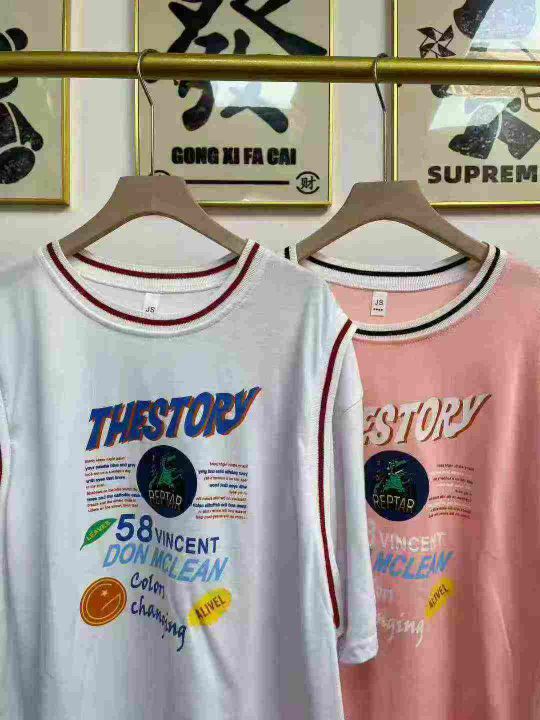 天猫在售款100件左右夏季女装运动风假两件纯棉大版休闲短袖T恤,单款两色,独立包装