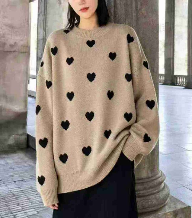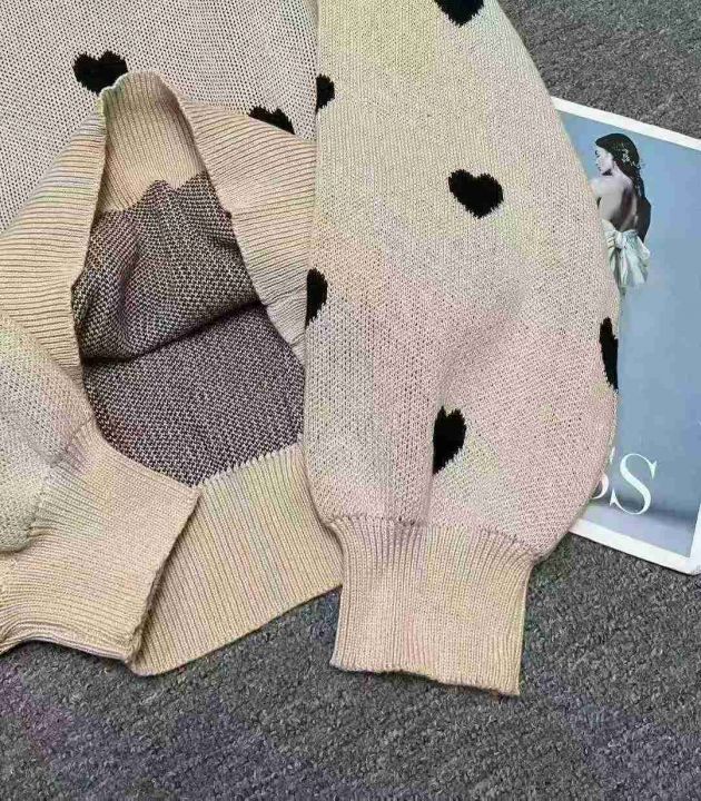 秋冬新款宽松慵懒风爱心大板提花包芯纱套头毛衣,独立...