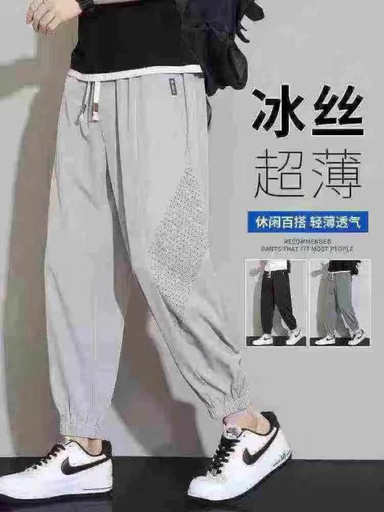网眼拼接款微弹力冰丝束脚运动休闲裤,男女同款,258...