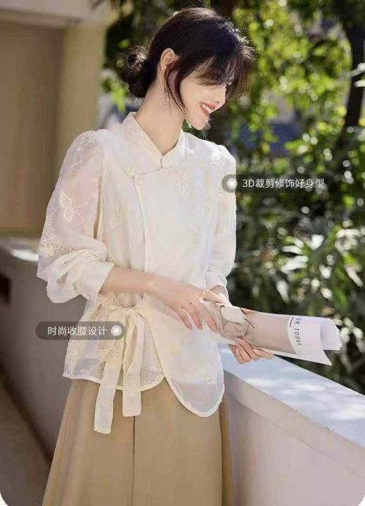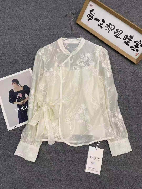 新中式两件套衬衫129件12.8,系带收腰,提花面料,国...