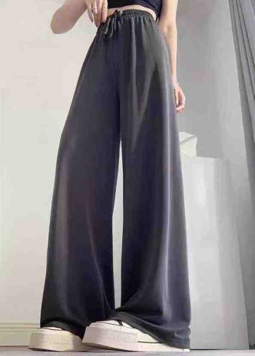 [月亮]:冰丝垂感松紧腰抽绳休闲冰丝裤