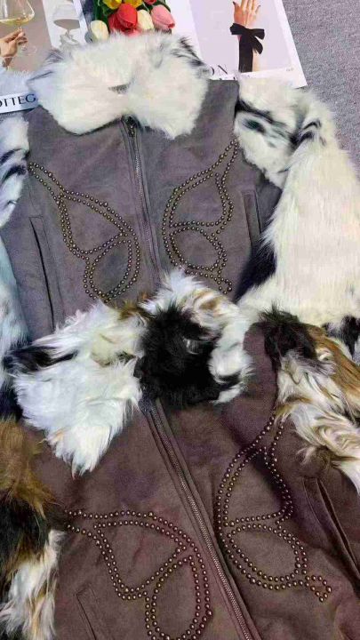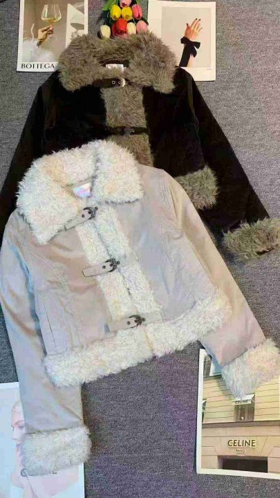 美拉德盐系轻熟毛毛拼接加绒外套,[爱心]35件左右,两个款,码数S-L,穿70-130斤,万佳档口货,原包装️无瑕疵,[666]实体店品质
