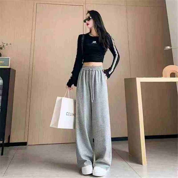 棉质运动裤女新款垂感休闲直筒春秋窄版松紧阔腿裤,数量408,码数s-2xl,独立包装,全清6.8元