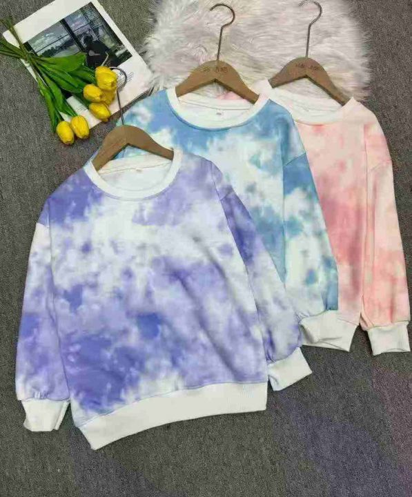 春秋长袖男女童洋气韩版扎染时尚休闲百搭圆领卫衣,独立包装,码数90-140码,数量461件,分货加1,货号1024#52