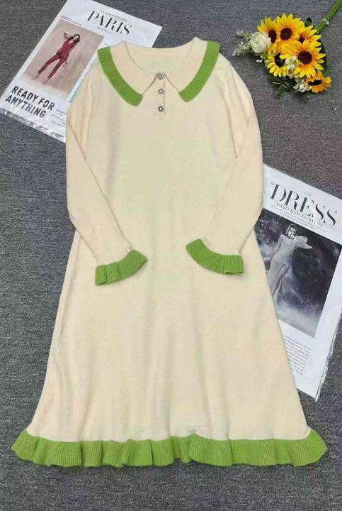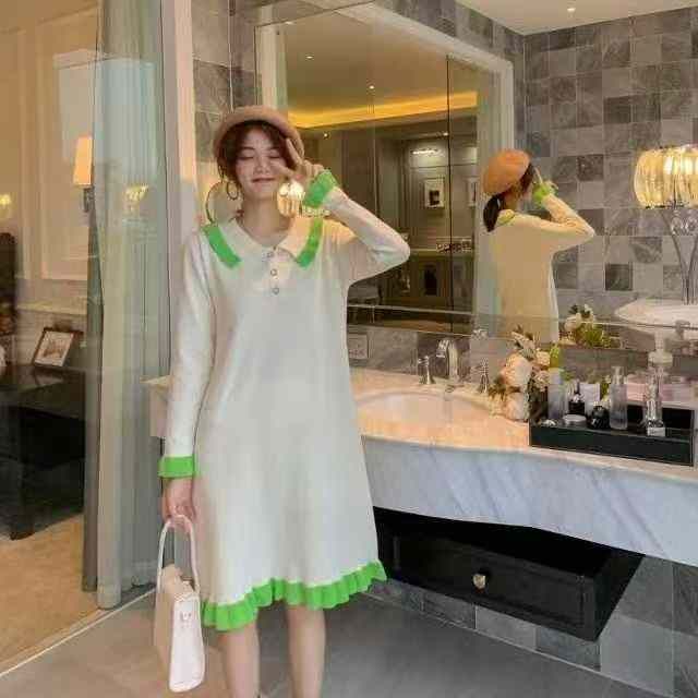 秋冬新款翻领韩版宽松学院风中长款小清新鱼尾针织包芯纱毛衣连衣裙,独立包装,均码面料软糯舒适,宽松版,290件,全清8.9元超低价秒杀!分货加一!