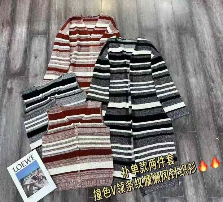 捡漏款,秋冬新款网红赫本风大长款条纹针织毛衣开衫,套装有20套左右,单件披肩有18件左右,38件,全清7.9元超低价秒杀!