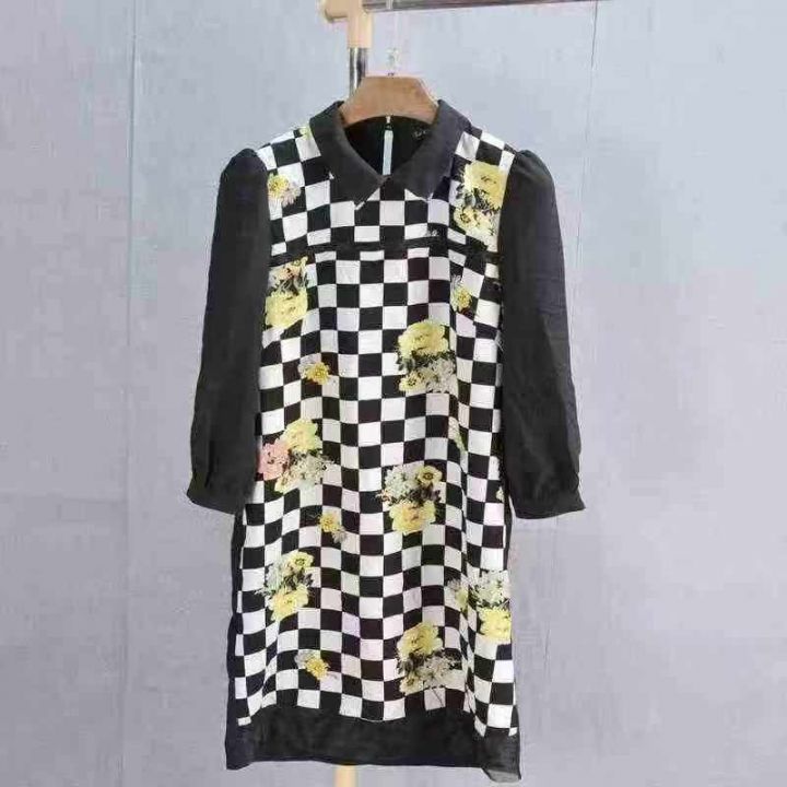 3.5元秒杀[發][發] 新款印花气质修身显廋长袖格子,白色地方轻微染色,独立包装,码数36-38-40,数量950件左右。