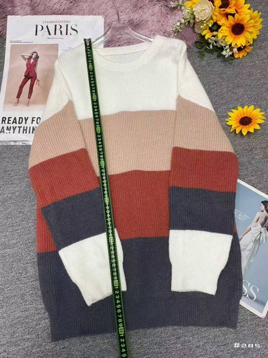 秋冬新款宽松慵懒风撞色条纹北极绒套头毛衣,独立包装...