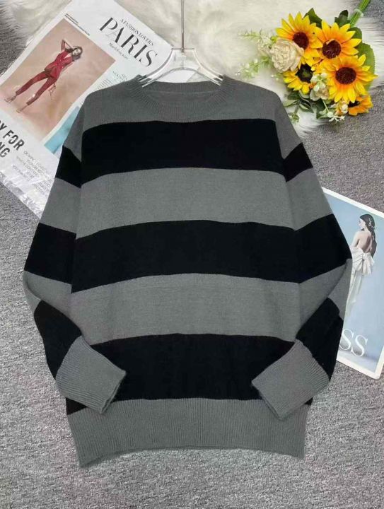 秋冬新款宽松慵懒风撞色条纹北极绒套头毛衣,独立包装,面料软糯厚实大版型...