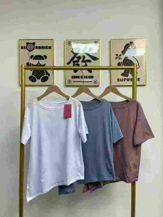 天猫在售款300件左右夏季薄款运动宽松下摆开叉不规则瑜伽服短袖T恤,高弹力,单款三色,S-XL,独立包装带吊牌