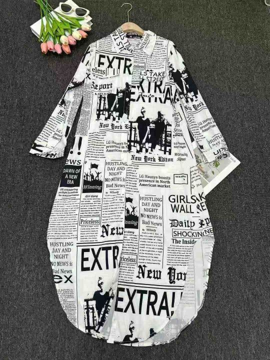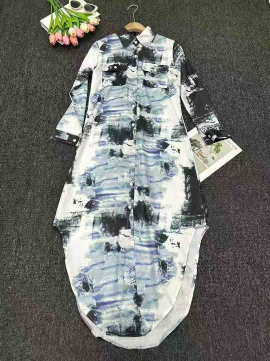 春季新款时尚气质速卖欧美印花纽扣衬衫长袖气质连衣裙,独立拉链包装,S-2XL,520件,全清10.8