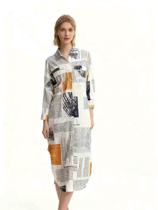 春季新款时尚气质速卖欧美印花纽扣衬衫长袖气质连衣裙...