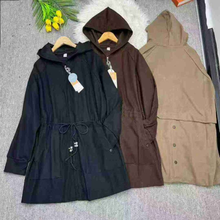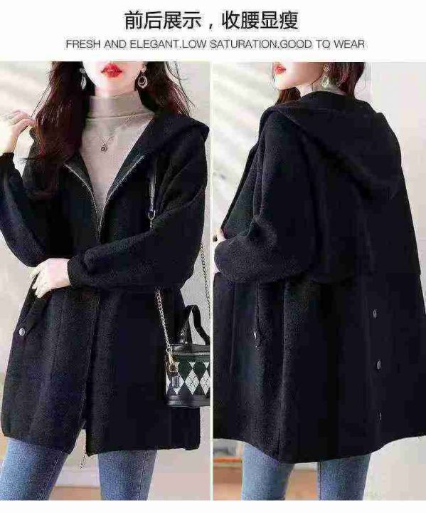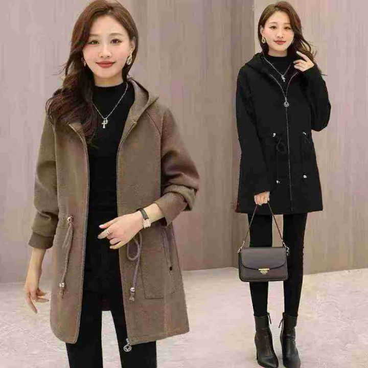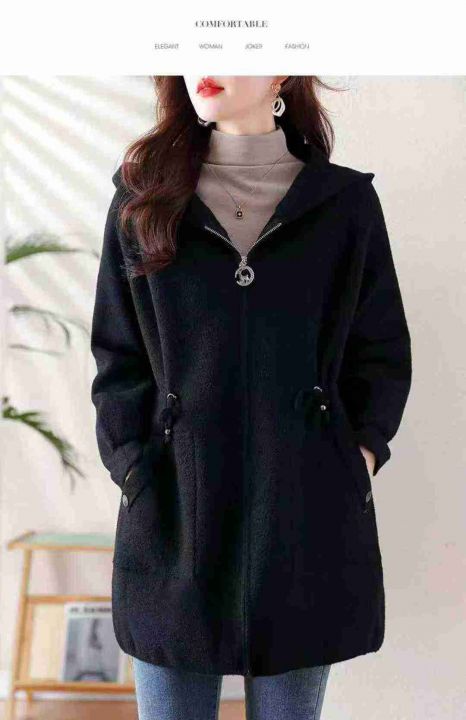 高级感连帽休闲女秋冬宽松呢子抽绳收腰拉链中长款大衣外套,独立包装,大货黑色为主,码数M-2XL,110件,货号1116#32