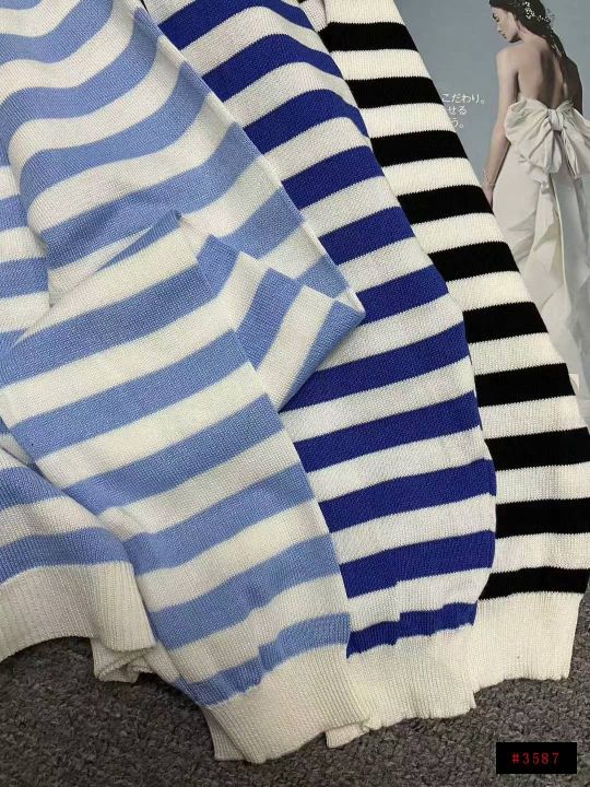 秋季新品设计款撞色条纹圆领套头毛衣,独立包装,均码面料软糯舒适弹力大,...