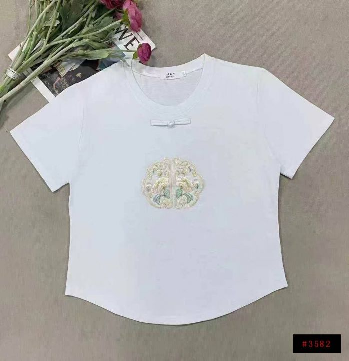 1625件国风重工刺绣中式盘扣拉架棉短袖T恤女,以黑色为主 ,尺码:M~2XL,面料亲肤透气,全部精品独立包装,整款微杂,全清价6.8元,分货加1。@_@