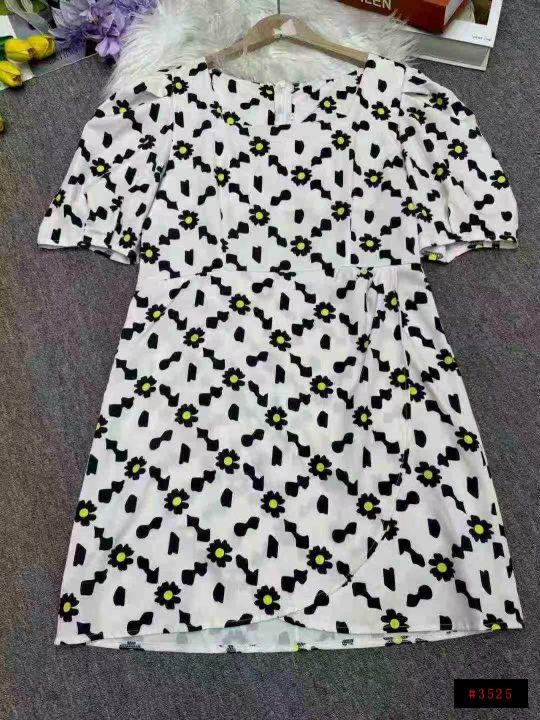 全清价8.5元夏季热卖雏菊泡泡袖名媛气质显瘦短袖裙方...