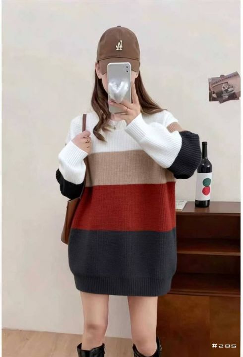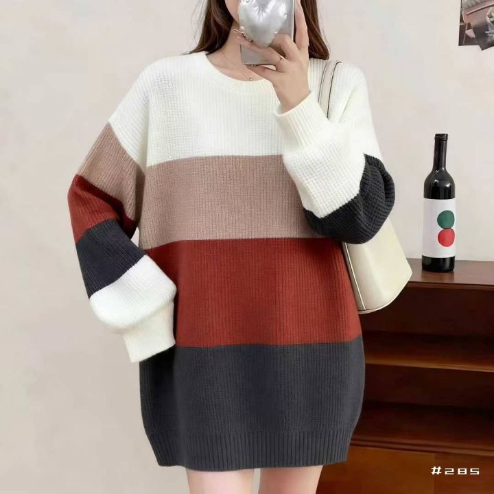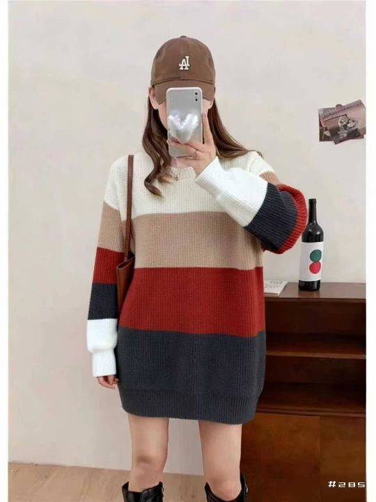 秋冬季新品韩版宽松百搭撞色条纹设计款加厚包芯纱套头毛衣,独立包装,均码...
