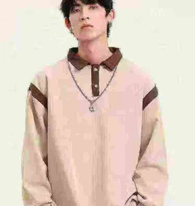 polo领大板落肩痞帅宽松棉质鱼鳞布卫衣,后领包边,29...