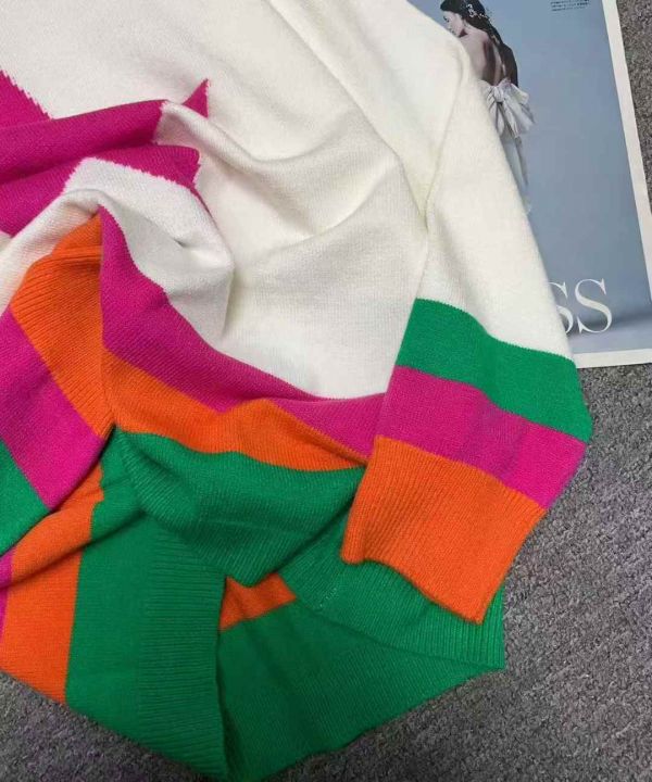 针织撞色镂空修身上衣女秋冬百搭显瘦可外穿内搭毛衣,整款2色,S-5XL码,弹...