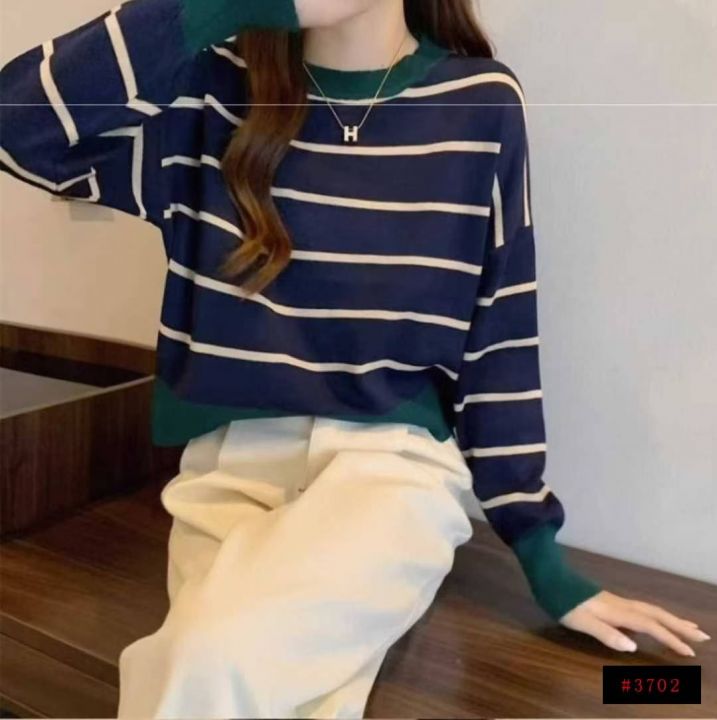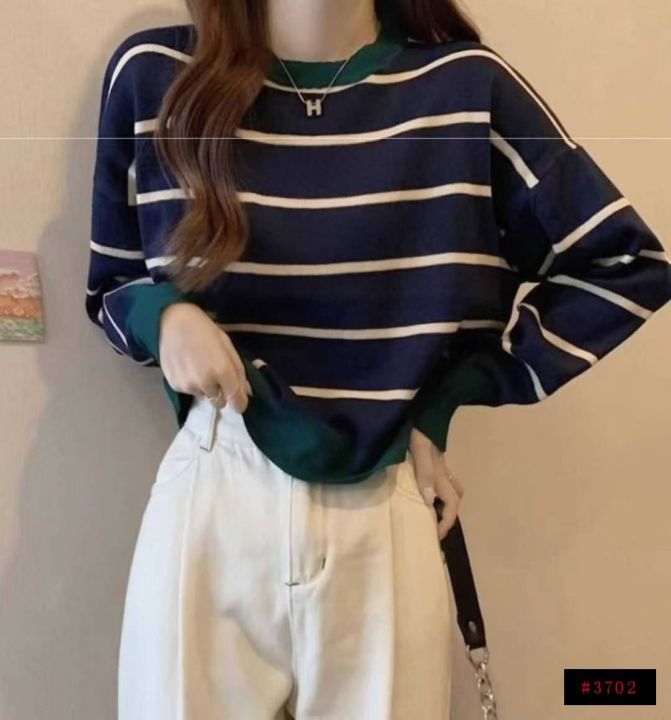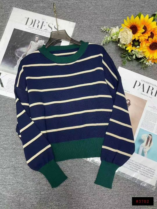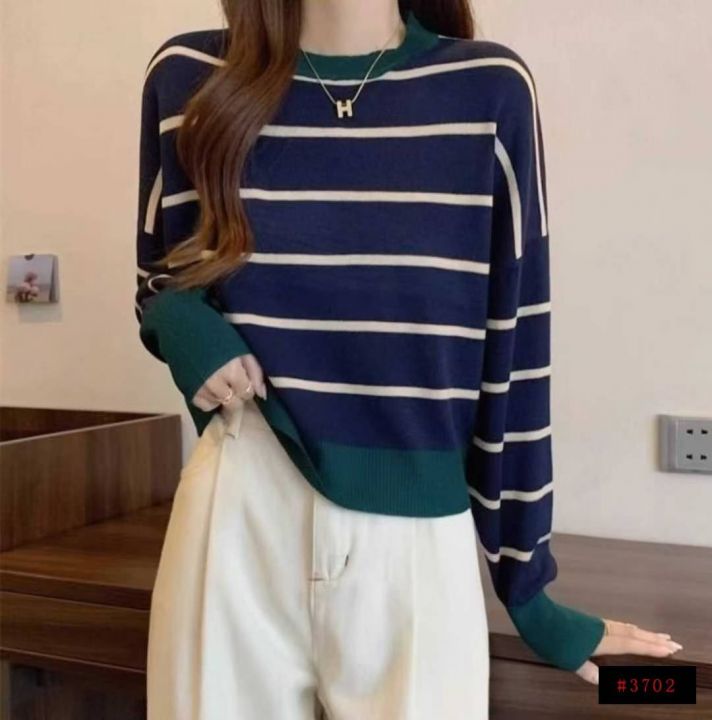 秋季新款短款宽松港味复古慵懒风撞色条纹针织套头毛衣,独立包装,均码面料柔软舒适弹力大,185件,全清7.9元超低价秒杀!@_@