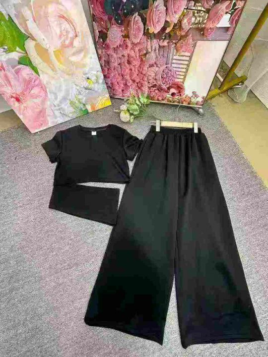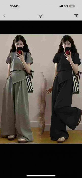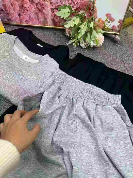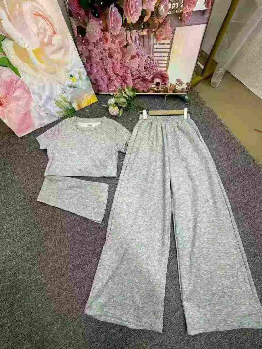 时尚阔腿休闲套装新款设计感洋气减龄显瘦短袖阔腿裤两件套,整款2色,灰色为主,独立包装,货品干净,后领包边,1到4码,3400套左右,12.8清,分货加1