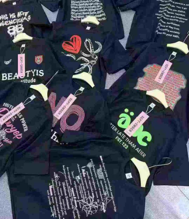 均码, 宽松版 ,统一吊牌独立包装。单款黑色多花型,潮牌短袖T恤女夏季新款爆款美式宽松纯棉半袖设计感小众上衣
