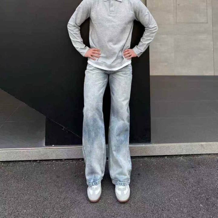 2025水洗冰蓝色磨白猫须直筒微喇牛仔裤男复古百搭宽松裤子情侣,独立包装,码数M-4XL,数量112条,全清11.8元
