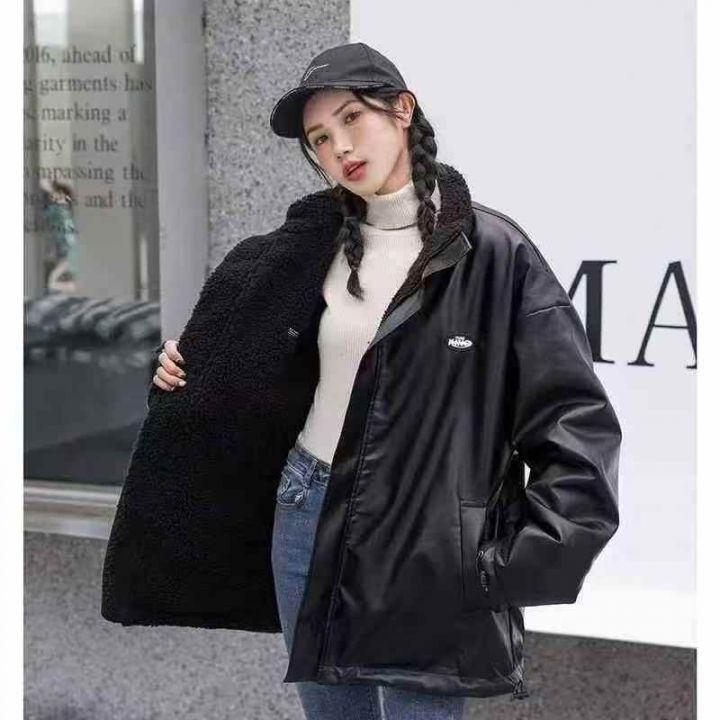 1100件,某猫在售两面穿棉服男女秋冬季ins加绒羊羔毛外套韩版潮流PU皮棉衣加厚棉袄,独立包装带吊牌,宽松版码数:S~XL码,全清29.9分货➕1。 货号:1303