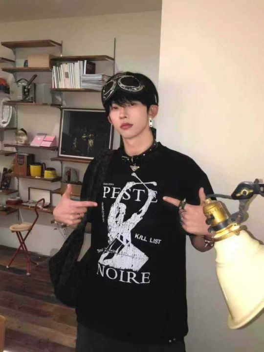 电商仓回收48件纯棉潮男黑色酷帅宽松大版男T恤,码数XL码。版型质量很好,货品新,全部独立包装。。 货号:1303