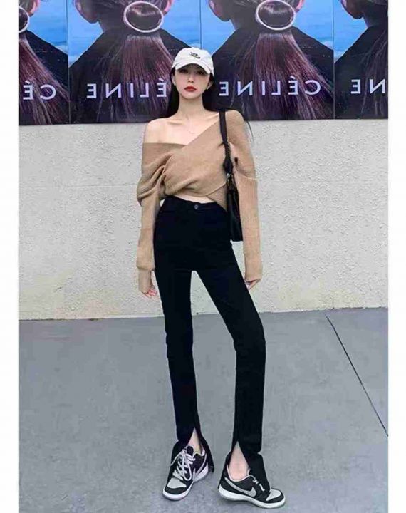 纯黑色高腰提档窄版直筒牛仔裤女款秋季修身显瘦长裤子 钢扣 拉链独立包装