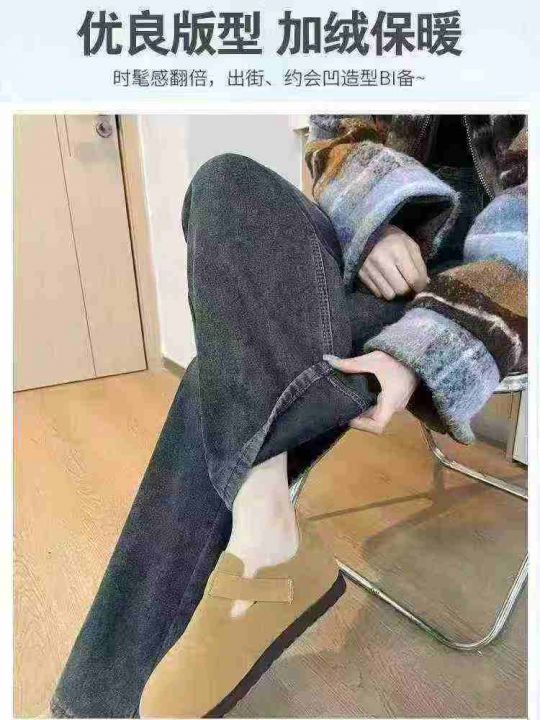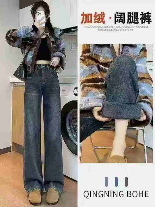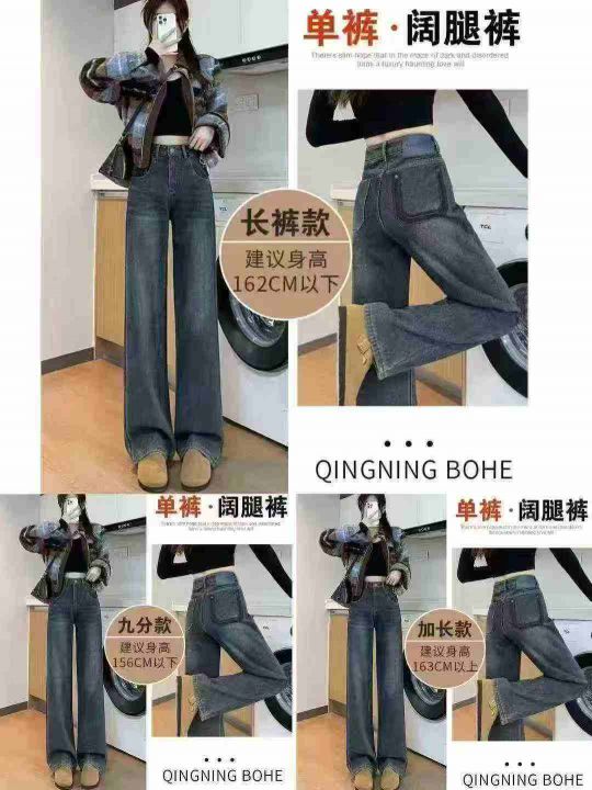 加绒阔腿显瘦高腰复古宽松直筒牛仔裤,单款单色,独立...