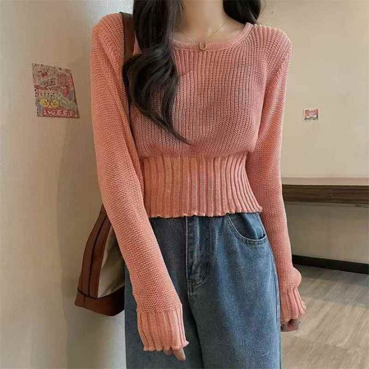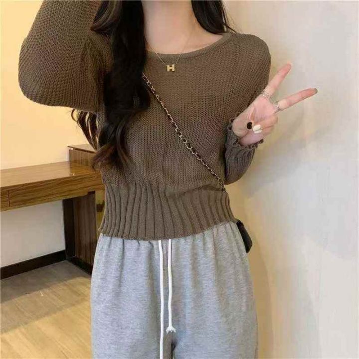 秋季新品净版简约圆领弹力修身收腰短款针织套头毛衣,独立包装,均码面料软糯舒适弹力大,1080件,全清5.9元超低价秒杀!分货加一!