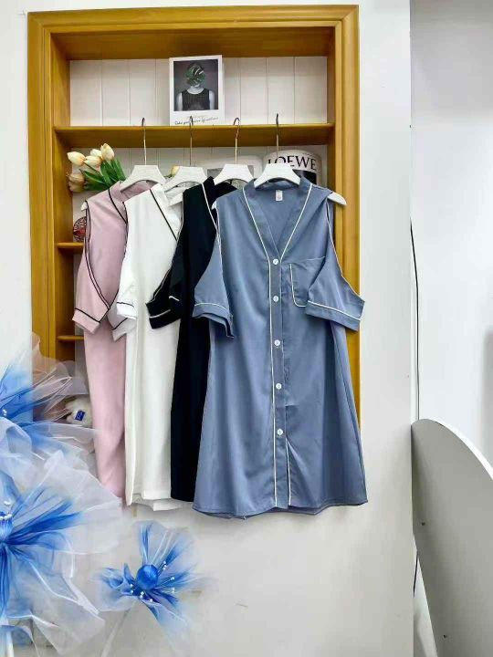 ① 网红冰丝性感露肩韩版宽松家居睡裙!独立包装,整款五色,有部分长袖款,码数M-2XL,数量300件左右,全清6.8元