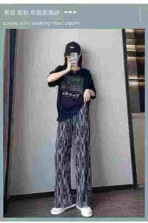 冰凉感直筒冰丝阔腿裤女夏季薄款休闲防蚊显瘦垂感扎染裤子,独立包装,码数M-2XL,数量496条,M码裤长90厘米,货号0915#54