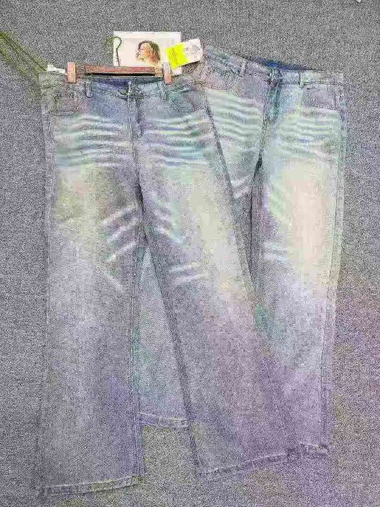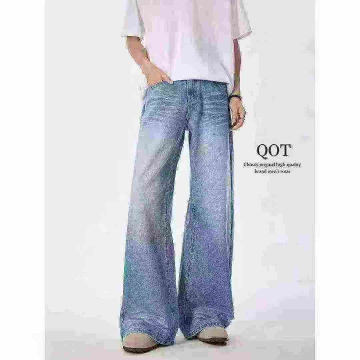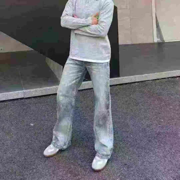 2025水洗冰蓝色磨白猫须直筒微喇牛仔裤男复古百搭宽松裤子情侣,独立包装,码数M-4XL,数量112条,全清11.8元。 货号:1323
